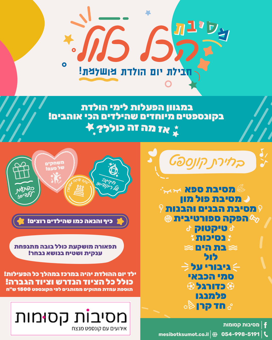 פלאייר לחברת מסיבות קסומות למגוון אירועי ימי הולדת בנושאים שונים, עיצבתי את הפלאייר עצמו ובנוסף גם רול אפ שמוצב באירועים